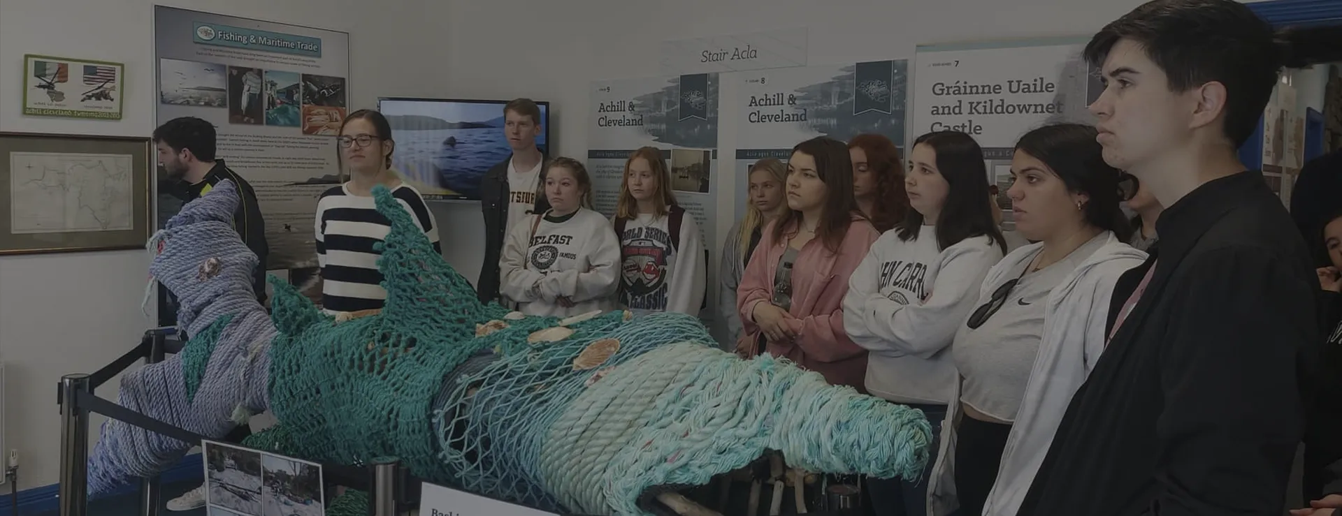 Groups can also explore our Visitors Centre that displays and highlights the unique heritage of Achill’s past and present, from the Greenway, the Deserted Village, our replica boley house that is surrounded by artefacts from years gone by and the fascinating history of the basking shark fishing industry that thrived for decades here in Achill.